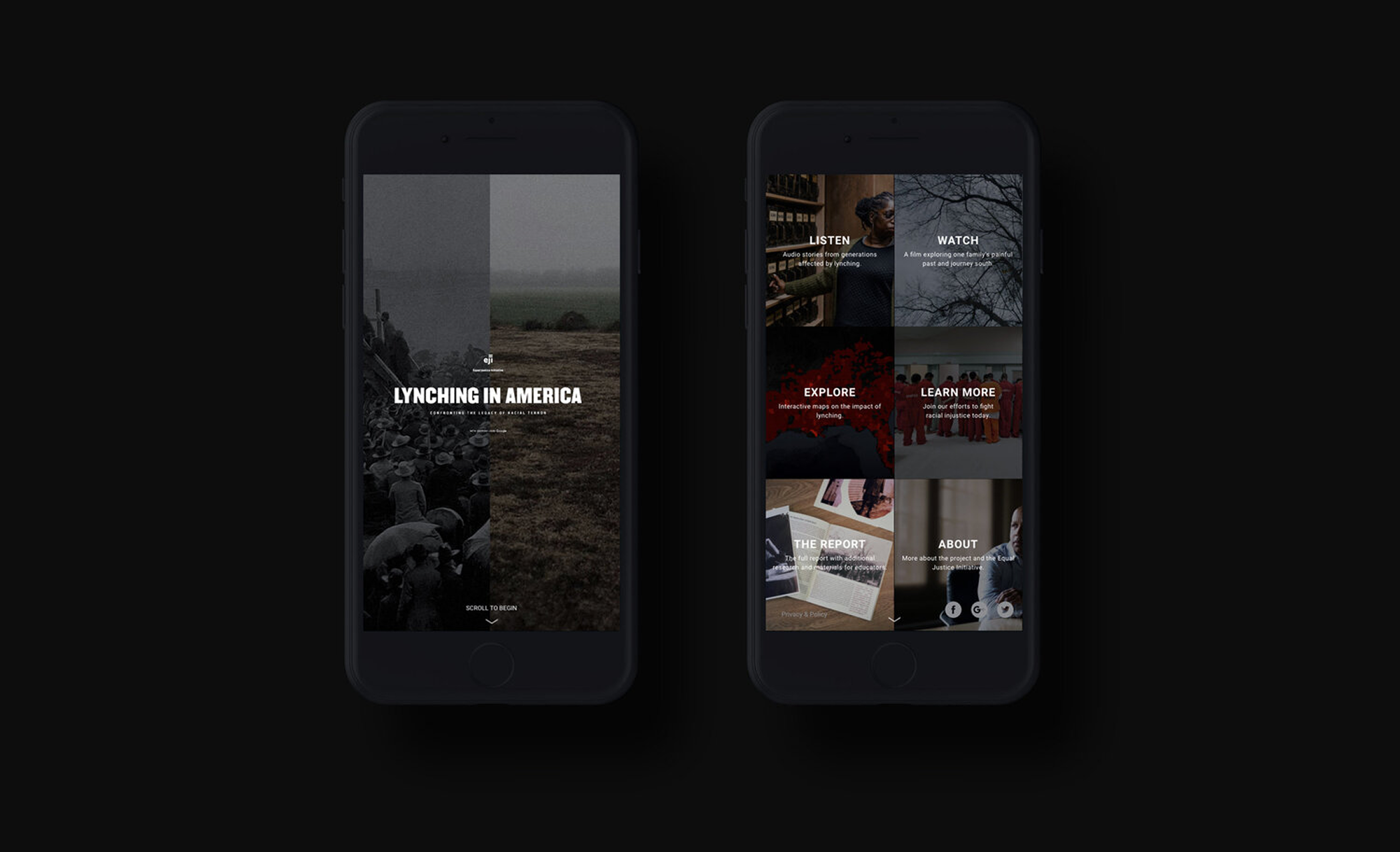 The interactive site lynchinginamerica.eji.org brought all of these elements together into one fluid experience and allowed for maximum reach at launch.